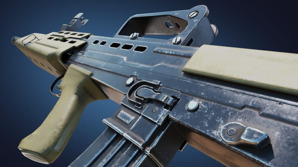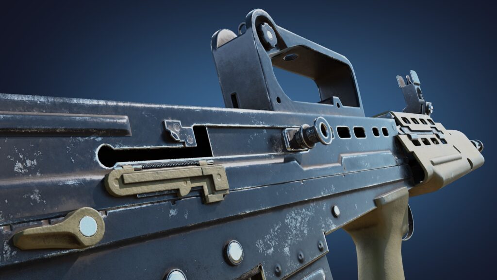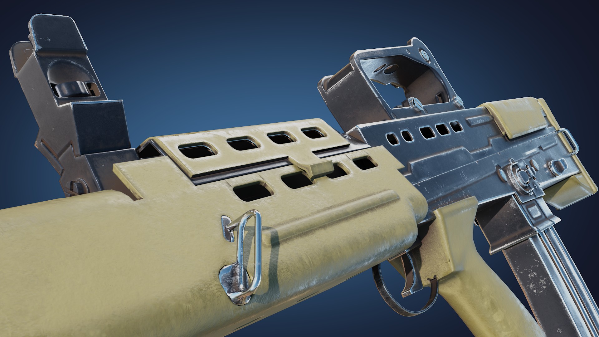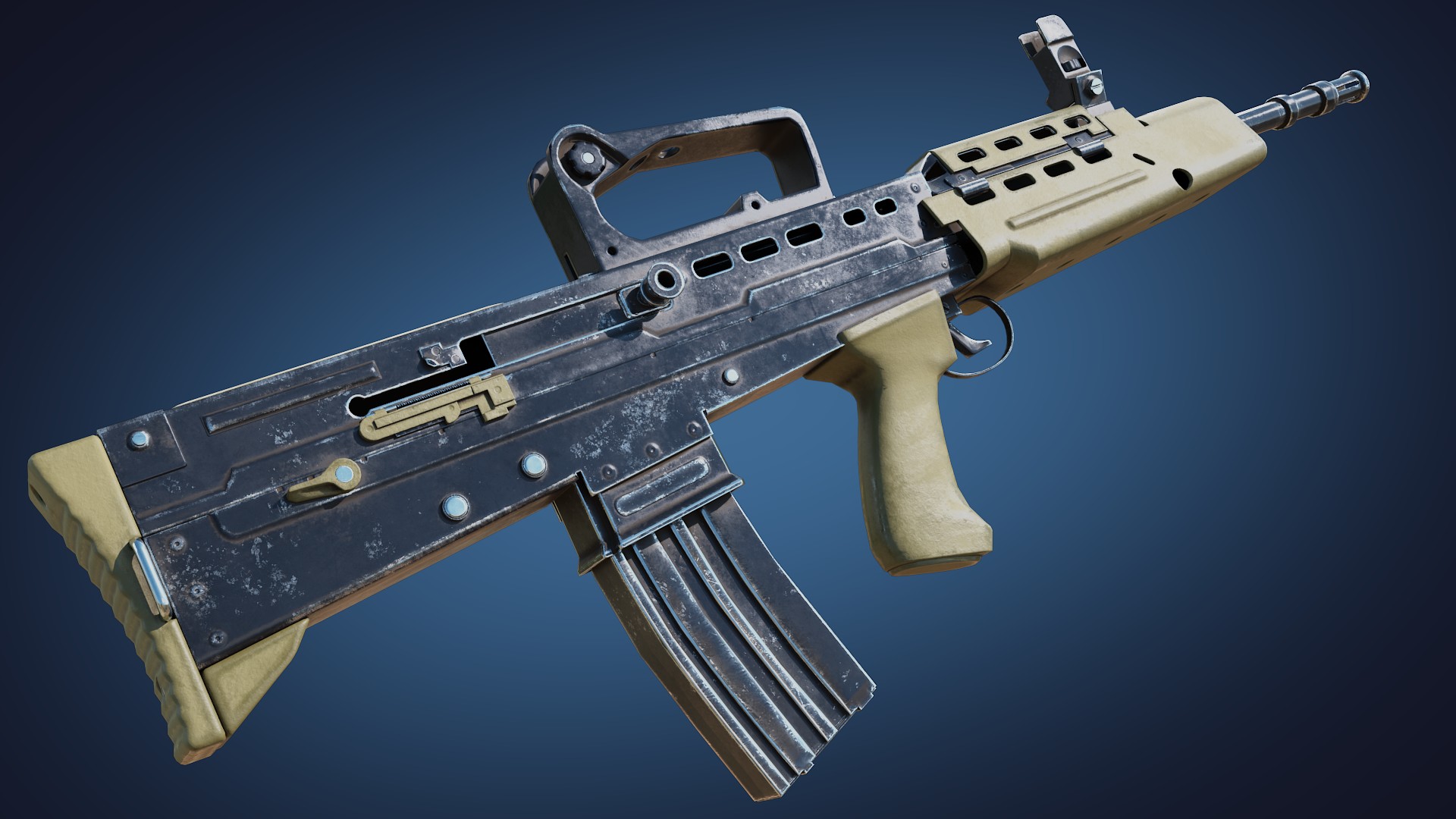Created in Blender in 2017 using subdivision modeling. Rendered in Cycles. Textured in Substance Painter. 14,6k triangles. View the L85 on Artstation.