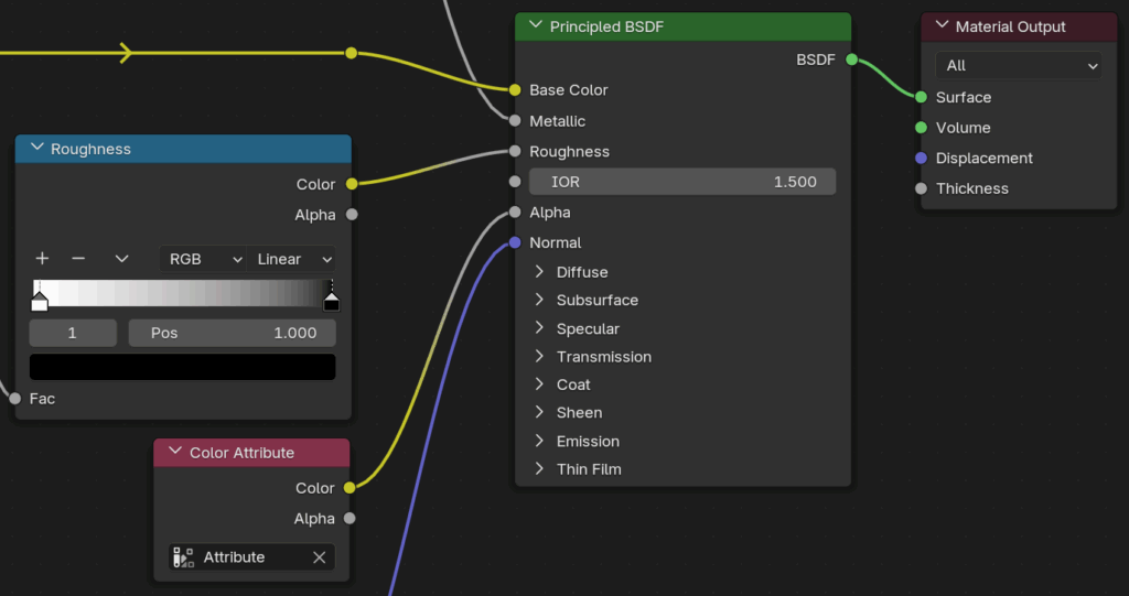 This vertex color mask is then fed into the highpoly mesh material’s Alpha slot.